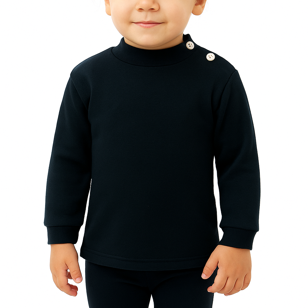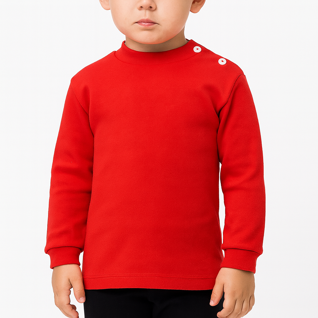 Camiseta de manga larga con tejido de alta composición en algodón peinado. Con cuello tipo semicisne, un poco alto, para abrigar esa zona. Hasta la talla 3 tiene una apertura en el lateral del cuello mediante botones, que facilita la entrada y salida de la cabeza del bebé. Perfecto para poner encima o debajo de alguna prenda. Con un tejido especial en los puños y cuello para que no se desboque con el uso. Tiene un pequeño porcentaje en elastano, que junto con la forma del tejido, hace que se adapte muy cómodamente al cuerpo sin oprimir. No tiene costuras, por lo que no roza la piel por ningún sitio. El tejido es anti-pilling, que no hace bolas. Los colores no se destiñen con los lavados.