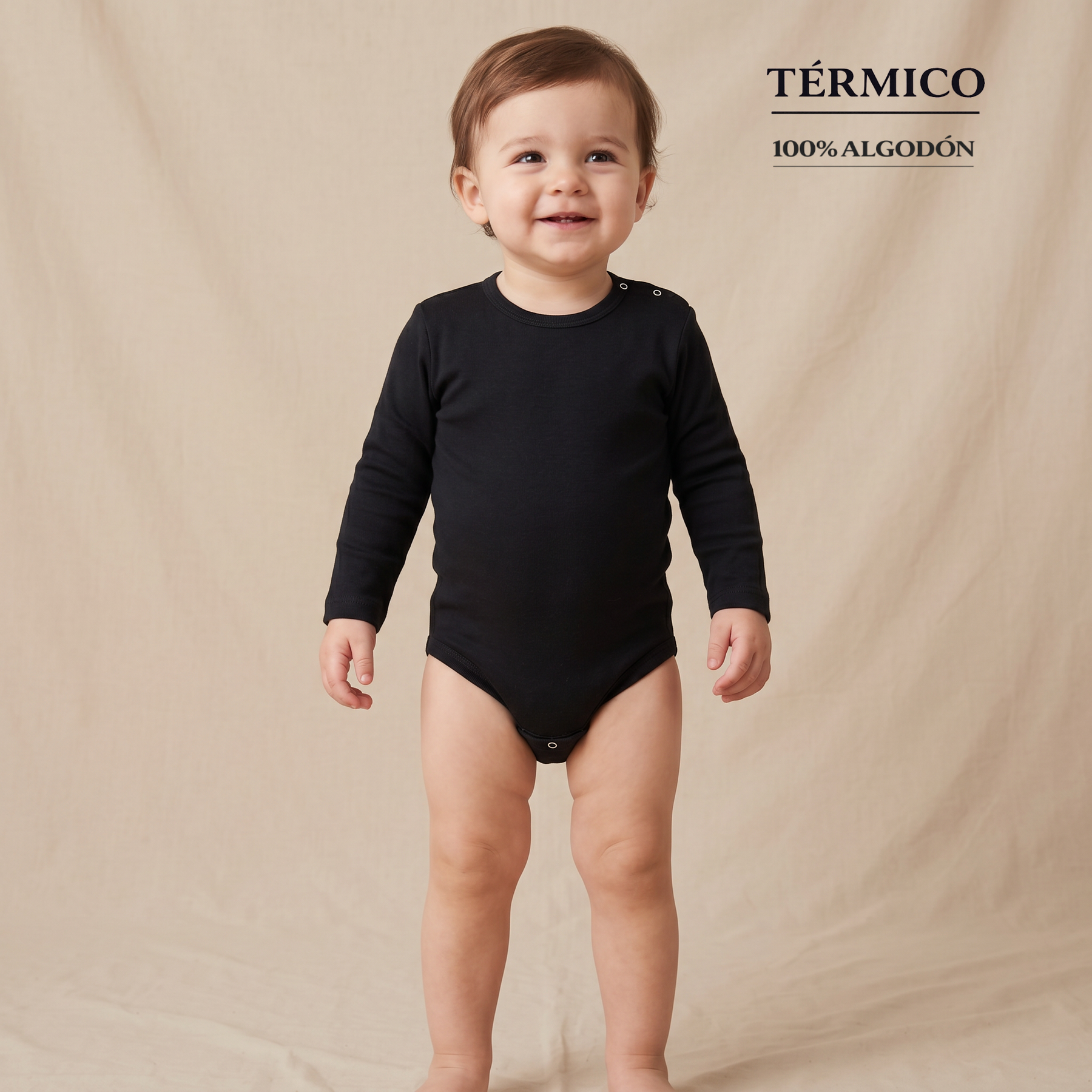 Body de manga larga con tejido térmico de invierno. Los pelitos afelpados de 100% algodón peinado quedan en contacto con la piel, así tu bebé irá calentito, seguro y cómodo. Se abre totalmente por el lado del cuello y por las piernas mediante unos corchetes súper resistentes. Hecho de un tejido totalmente transpirable que aguanta innumerables lavados.