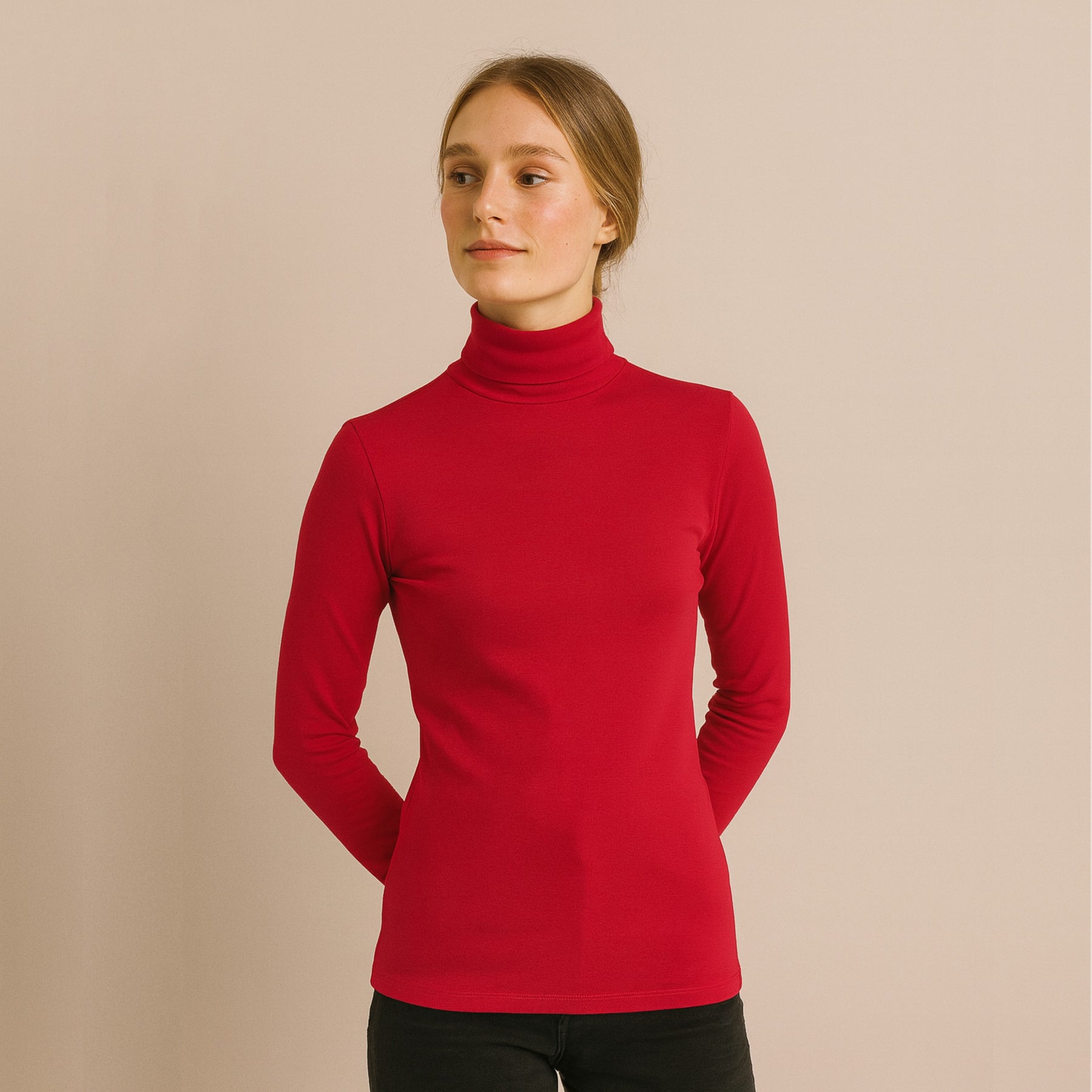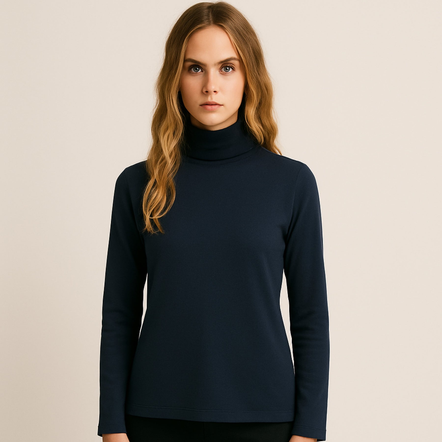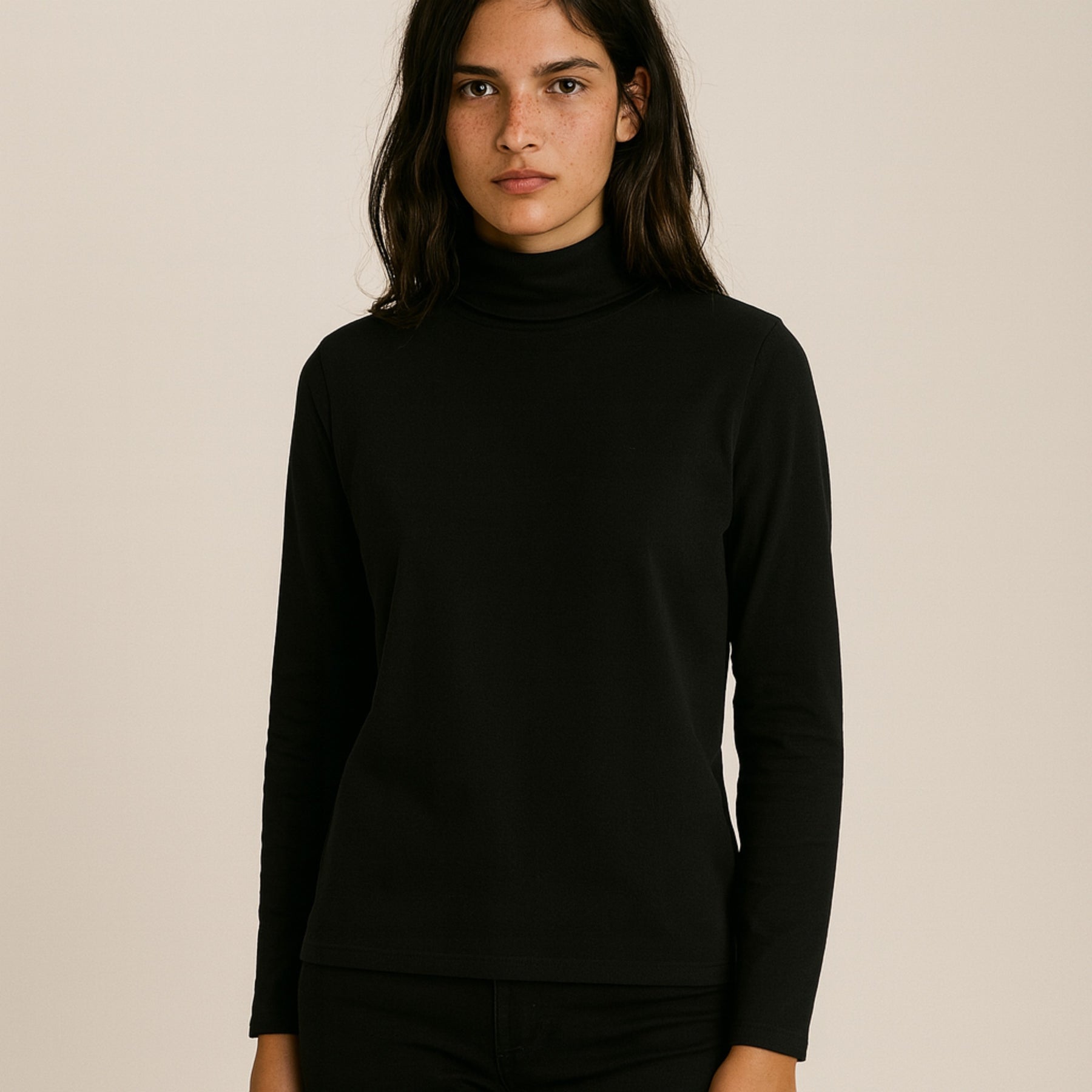 Elegante y versátil camiseta de cuello alto confeccionada en España con algodón 100% de alta calidad. Suave al tacto y perfecta para mantener la comodidad sin sacrificar el estilo. Ideal para cualquier ocasión, ya sea casual o sofisticada.