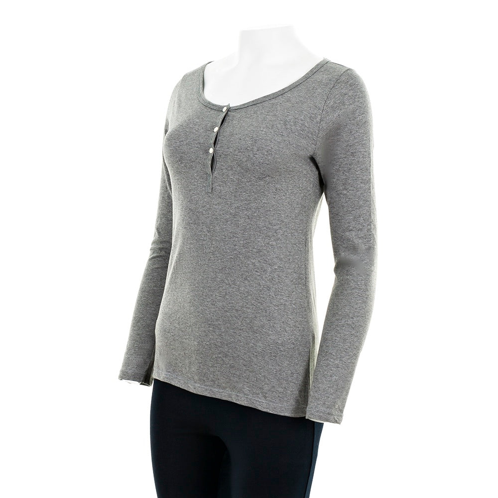 Camiseta de manga larga de 100% algodón peinado y con cuello tipo panadero, con botones en la tapeta. El tejido es liso y fino, perfecto para los días de primavera. Material totalmente natural y transpirable, ideal para alergias o pieles atópicas. El tejido es anti-pilling, que no hace bolas. Los colores no se destiñen con los lavados.