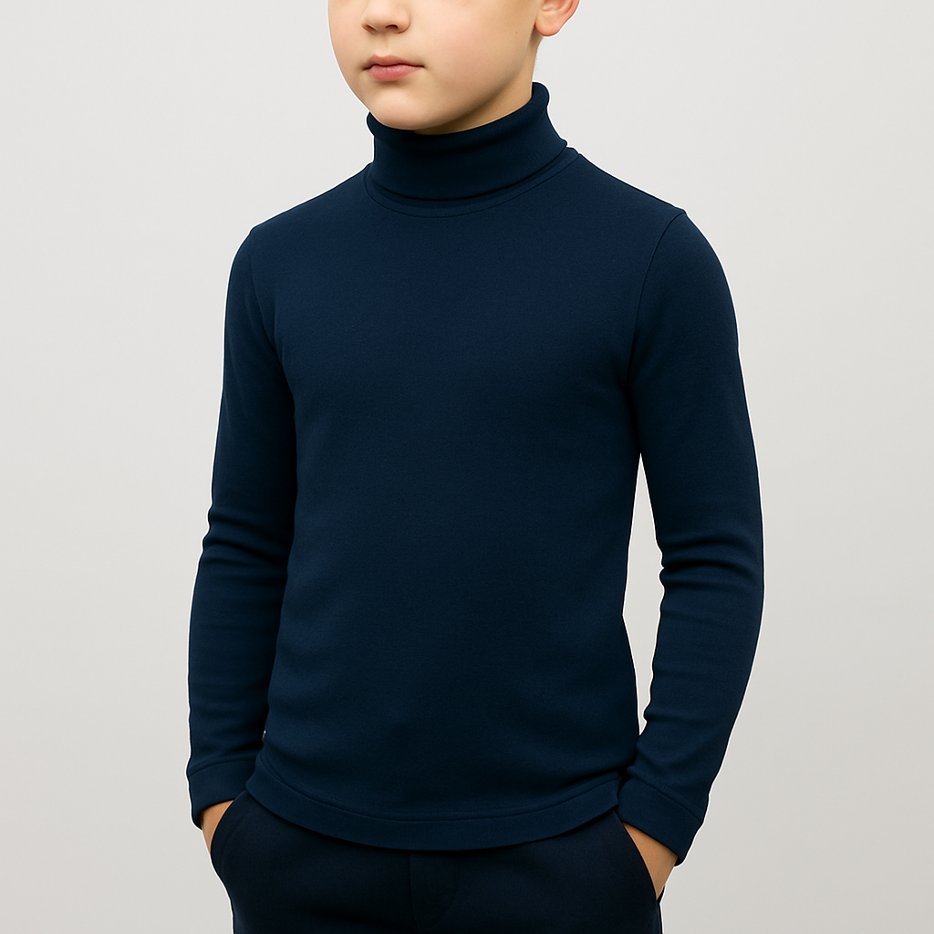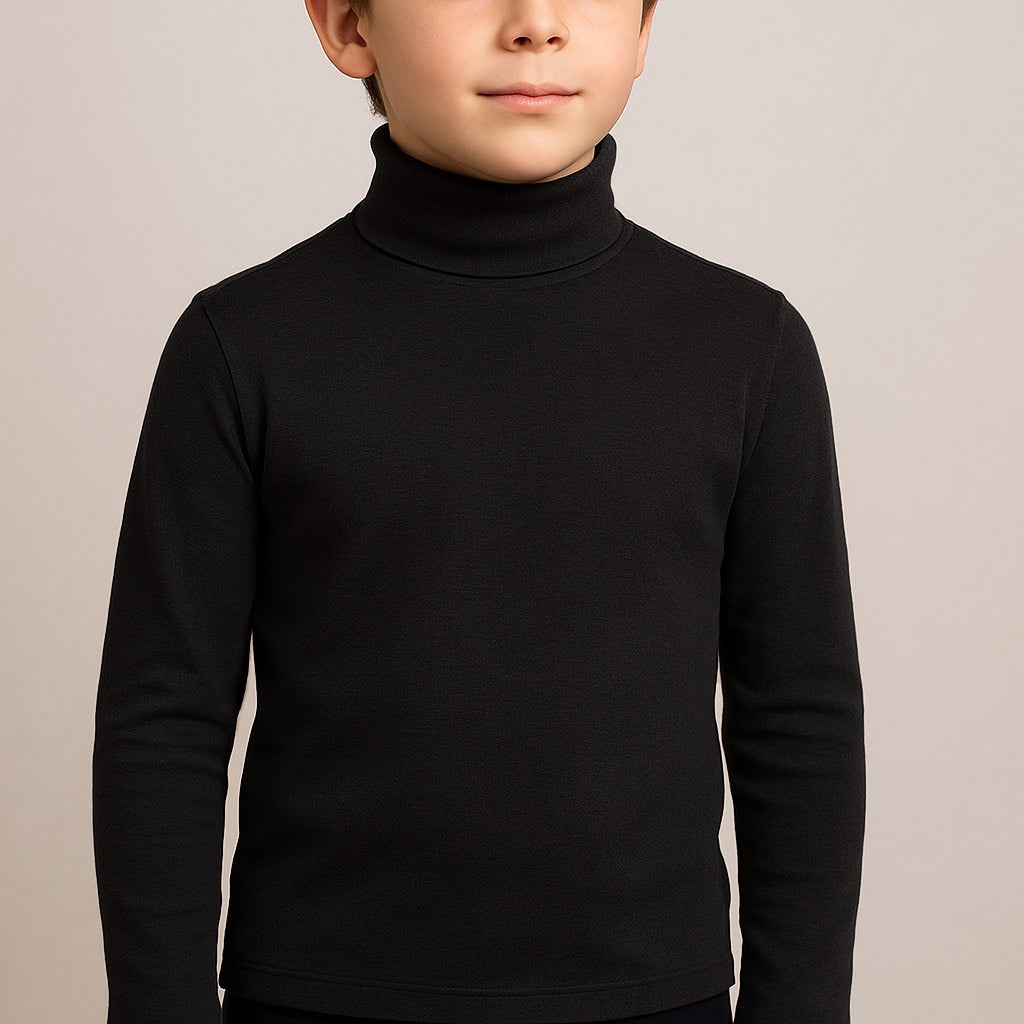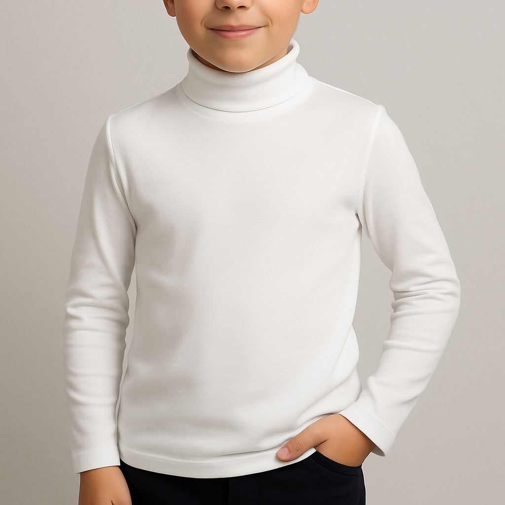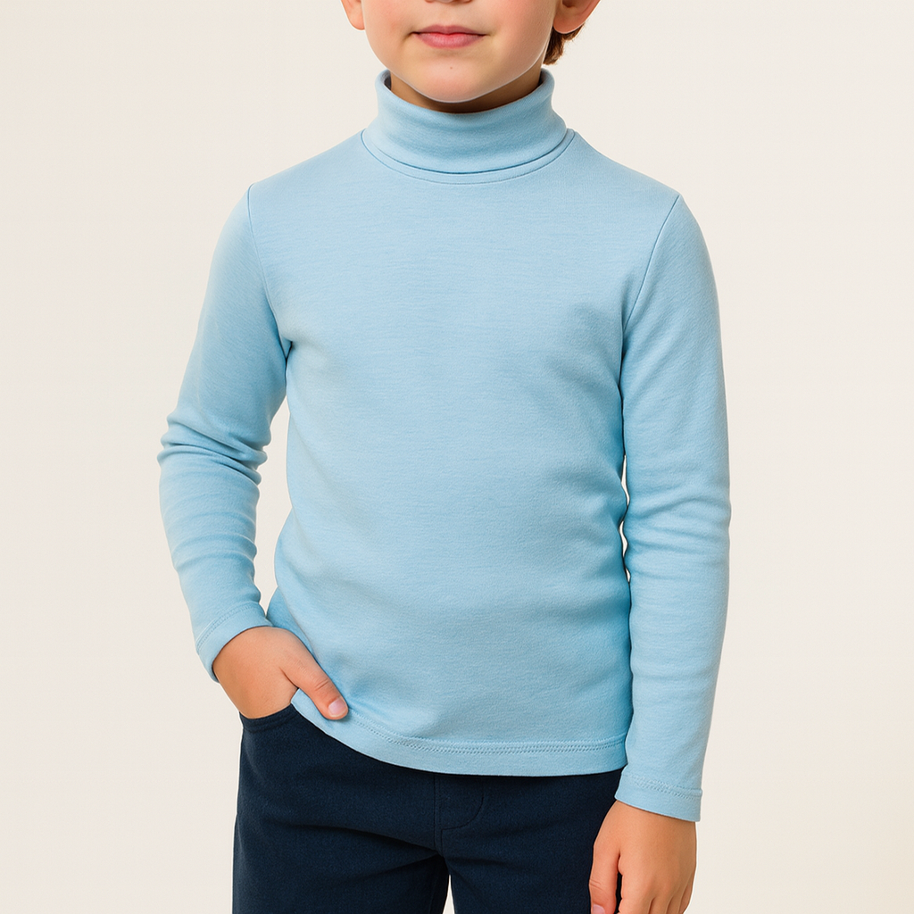 Camiseta de manga larga con cuello alto y de alta composición en algodón peinado. Gracias a su pequeño porcentaje en elastano y a la forma del tejido, queda algo ceñida al cuerpo y no se deforma con el uso. Queda ideal tanto exteriormente como debajo de alguna prenda, siempre abrigando el cuello. No tiene costuras, por lo que no roza la piel por ningún sitio. El tejido es anti-pilling, no hace bolas, y los colores resisten incontables lavados.