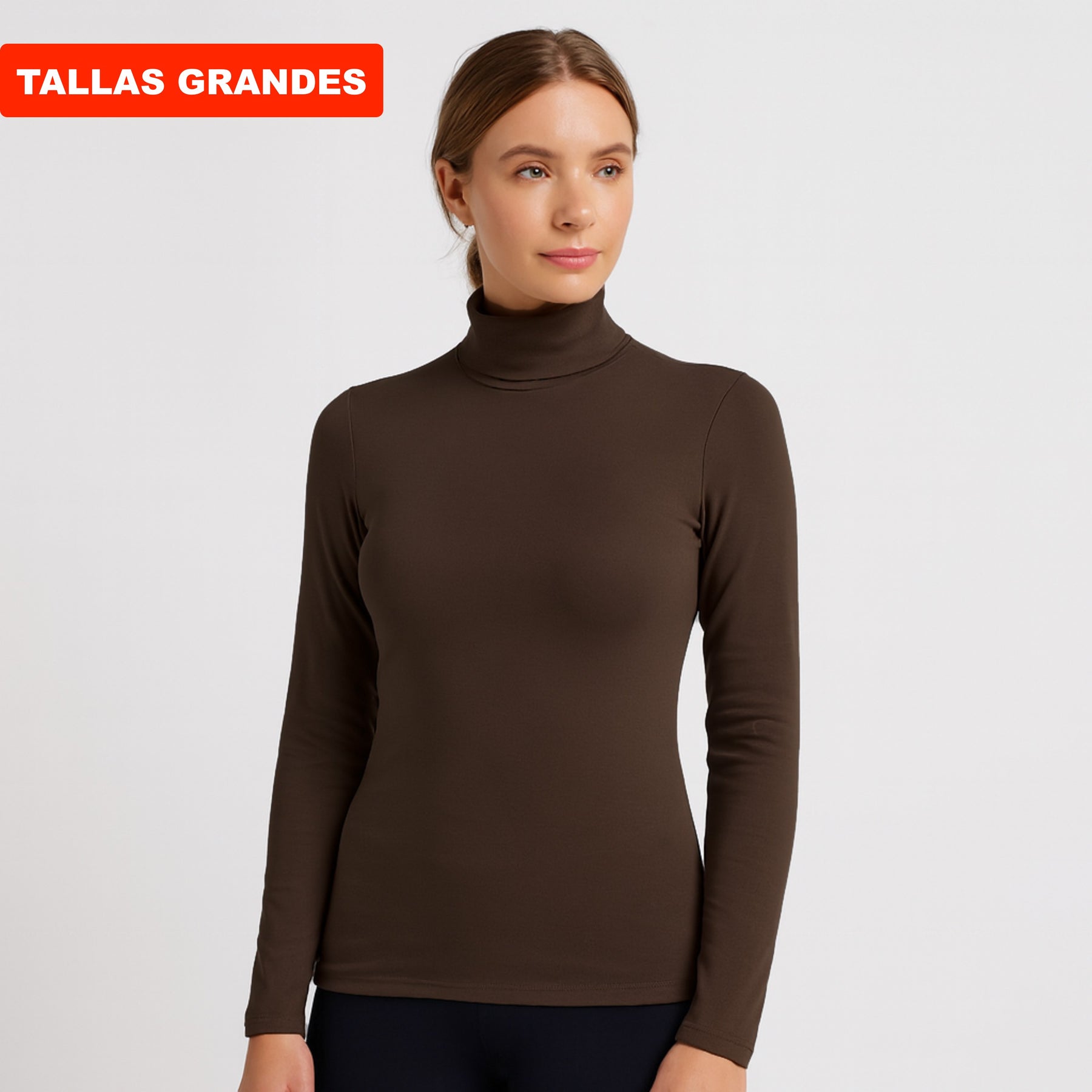 Camiseta de manga larga con cuello alto y de alta composición en algodón peinado. Gracias a su pequeño porcentaje en elastano y a la forma del tejido, queda algo ceñida al cuerpo y no se deforma con el uso. Queda ideal tanto exteriormente como debajo de alguna prenda, siempre abrigando el cuello. No tiene costuras, por lo que no roza la piel por ningún sitio. El tejido es anti-pilling, no hace bolas, y los colores resisten incontables lavados.