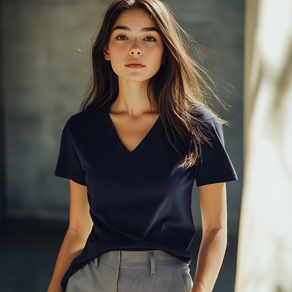 Camiseta de manga corta y cuello pico con tejido de todo tiempo de 100% algodón peinado. Su patrón es recto y ancho, principalmente diseñado para las mujeres con tallas más grandes y que quieren que no se le pegue la prenda al cuerpo. Con un tejido especial en el cuello para que no se desboque con el uso. Material totalmente natural y transpirable, ideal para alergias o pieles atópicas. No tiene costuras, por lo que no roza la piel por ningún sitio. El tejido es anti-pilling, que no hace bolas. Los colores no se destiñen con los lavados.