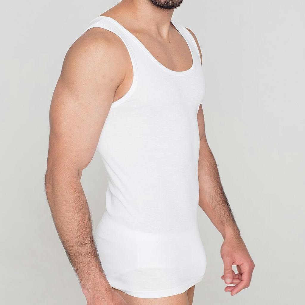 Camiseta básica de tirantes de 100% algodón peinado. Ideal para hombres con problemas de alergias o intolerancias a materiales que no sean naturales. Es de un tejido de todo tiempo que se adapta al cuerpo sin renunciar a su material totalmente natural y transpirable. No tiene costuras, por lo que no roza la piel por ningún sitio y es muy cómoda.