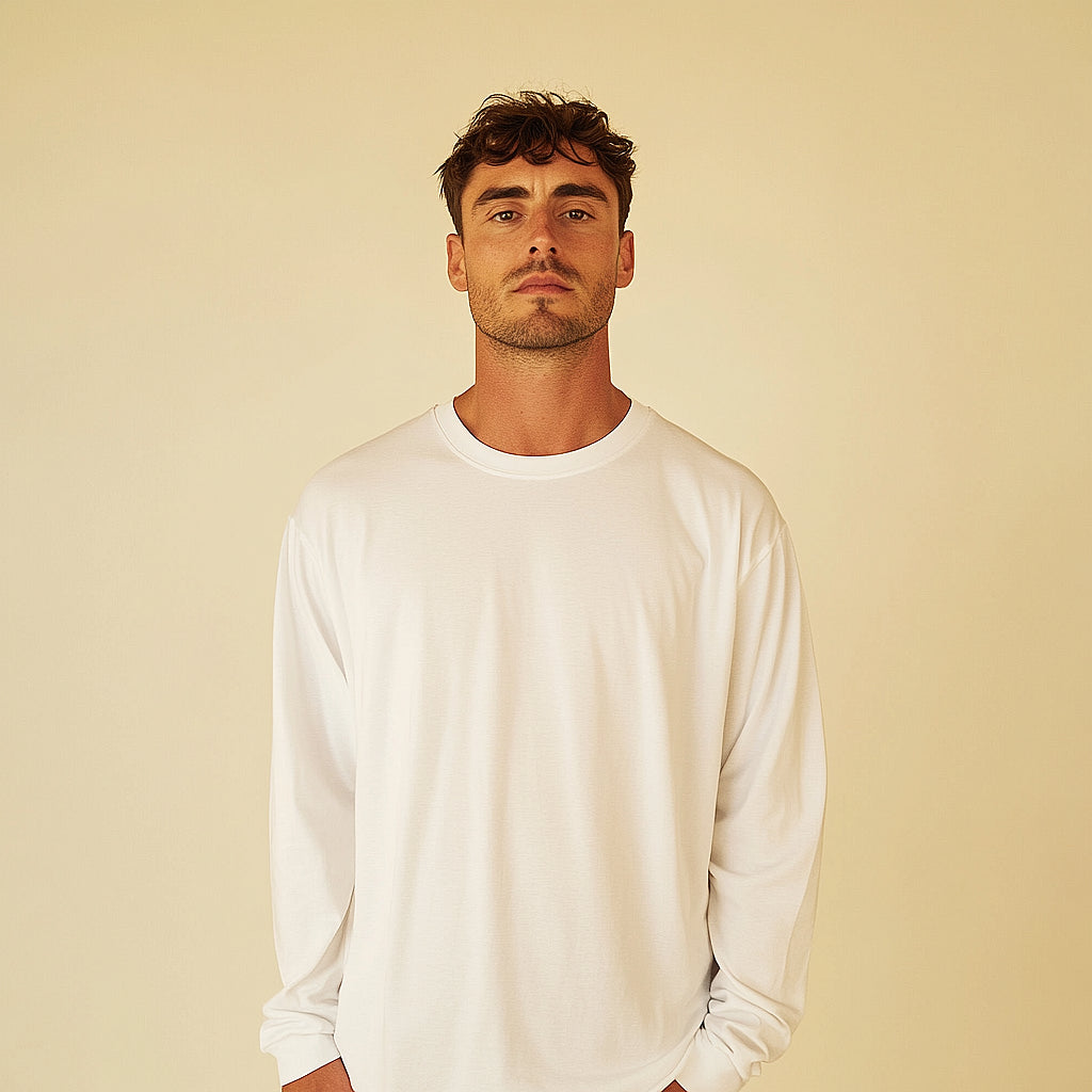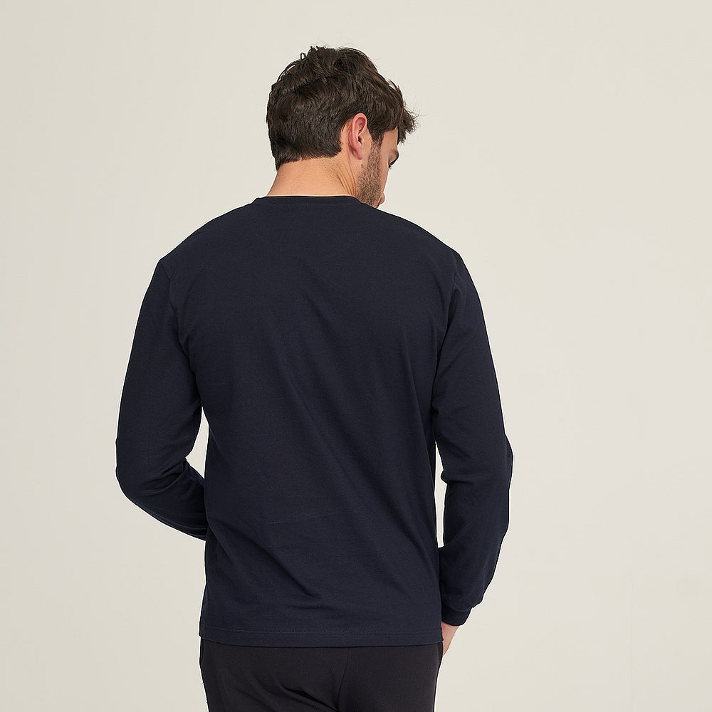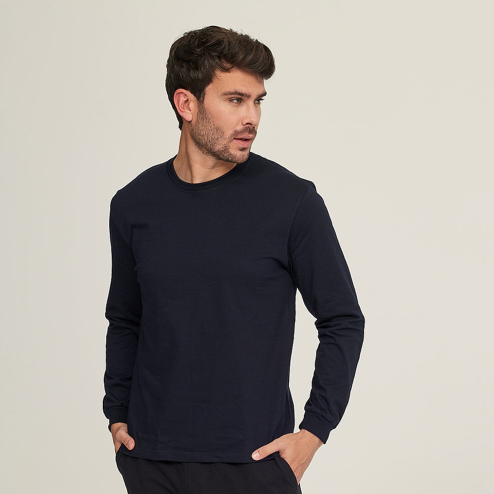 Camiseta de manga larga con tejido liso de 100% algodón peinado. Con un tejido especial en el cuello y puños para que no se desboque con el uso. Material totalmente natural y transpirable, ideal para alergias o pieles atópicas. El tejido es anti-pilling, que no hace bolas. Los colores no se destiñen con los lavados.