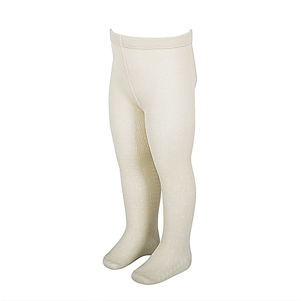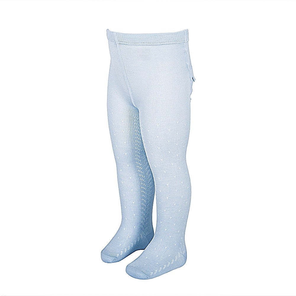 Estos leotardos calados y con puntillas de entretiempo están hechos de infinidad de detalles y calidad. La cintura está formada por un tejido elástico de una anchura específica que no aprieta en absoluto y que no se rompe, como lo podría hacer una goma. El tejido tiene una alta composición en algodón, y también poliamida para dotar de mayor durabilidad y comodidad. Es una prenda que resiste mucho uso y lavados sin dañarse, deformarse y sin hacer bolas. Las costuras de los pies son finas y quedan por encima de los dedos sin molestar por tanto. La parte del pie tiene forma como un calcetín y no es por tanto un tubo que no se adapta a esta zona tan importante. El algodón es perlé hilo de Escocia, que es muy suave y transpirable para que no pasen calor. El calado tiene forma de espigas y puntos, y las puntillas en la parte trasera quedan muy bonitas debajo de vestidos.