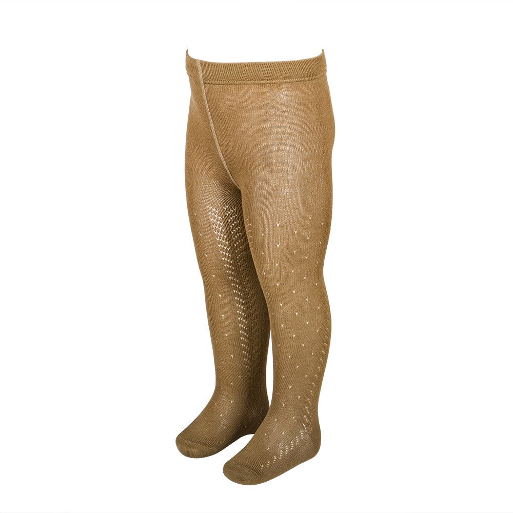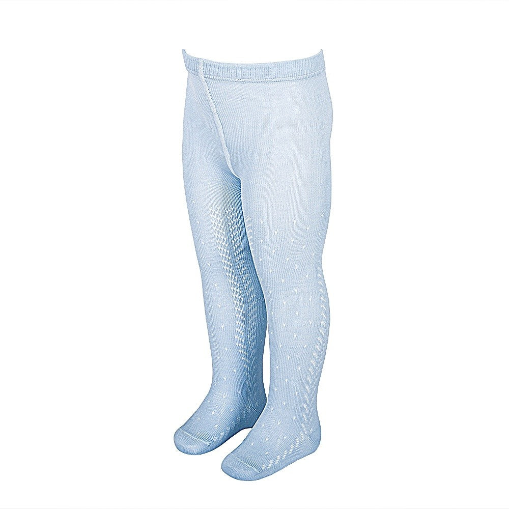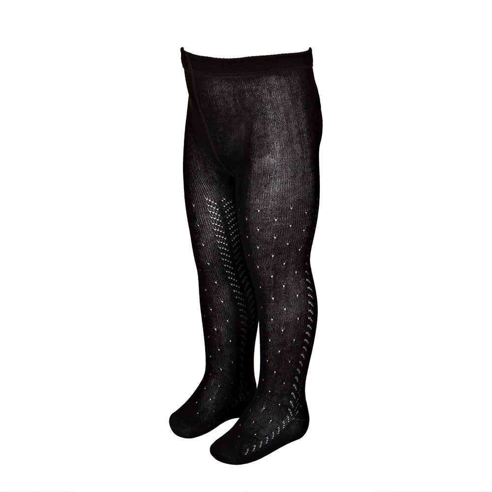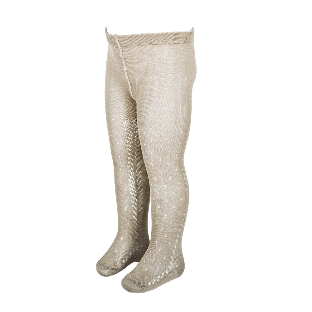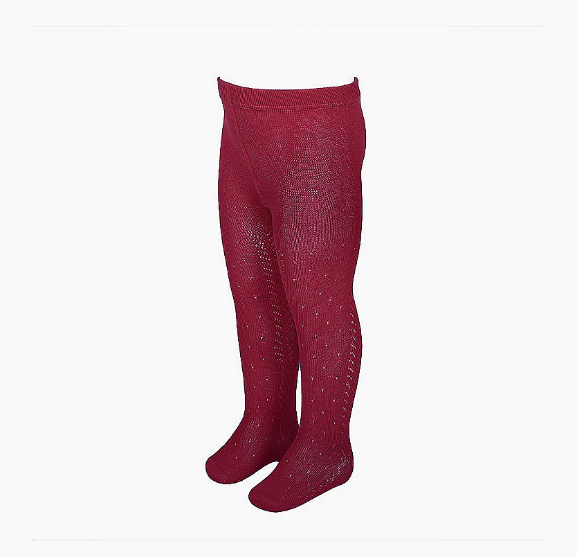 Estos leotardos calados de entretiempo están hechos de infinidad de detalles y calidad. La cintura está formada por un tejido elástico de una anchura específica que no aprieta en absoluto y que no se rompe, como lo podría hacer una goma. El tejido tiene una alta composición en algodón, y también poliamida para dotar de mayor durabilidad y comodidad. Es una prenda que resiste mucho uso y lavados sin dañarse, deformarse y sin hacer bolas. Las costuras de los pies son finas y quedan por encima de los dedos sin molestar por tanto. La parte del pie tiene forma como un calcetín y no es por tanto un tubo que no se adapta a esta zona tan importante. El algodón es perlé hilo de Escocia, que es muy suave y transpirable para que no pasen calor. El calado tiene forma de espigas y puntos.