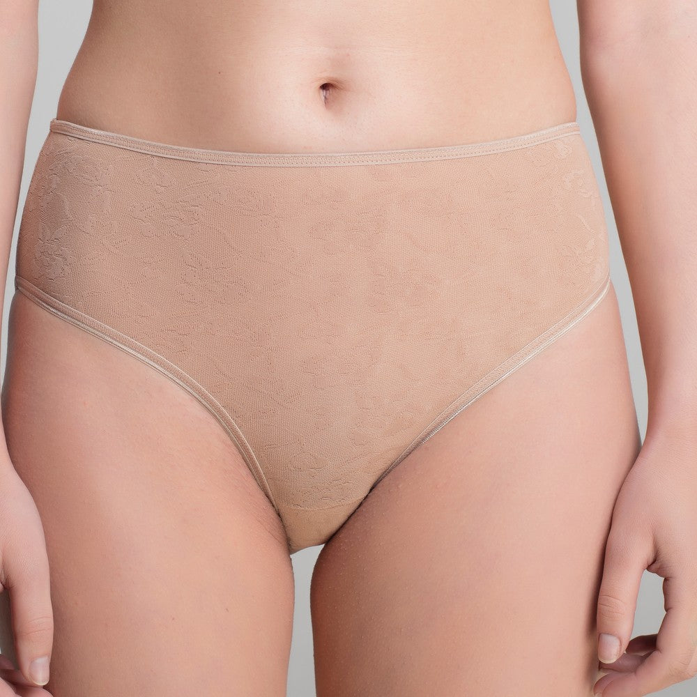 Braga con dibujo blonda de flores, de tiro medio y con cintura y perneras adaptables. El tejido es elástico y se adapta sin perder su forma con los lavados. Disponible en varios colores, que resisten lavados sin decolorar. Su patrón medio es perfecto para las mujeres que quieren combinar sujeción sin opresión. Una prenda elegante, de alta calidad y comodísima.