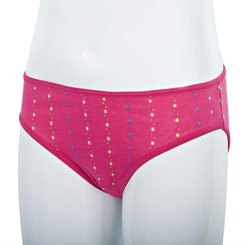 Braguita de 100% algodón peinado con cintura y perneras adaptables. Es de un tejido liso de todo tiempo que transpira y no retiene la humedad. El fondo es blanco, azul o frambuesa con un bordado en forma de puntos de colores surtidos. La braguita resiste incontables lavados y el tejido es anti-pilling, que no hace bolas. El tiro no es muy alto, por lo que no oprime la cintura.