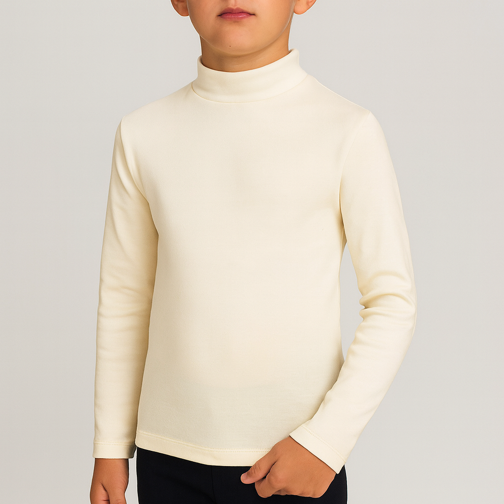 Camiseta de manga larga con cuello medio-alto y de alta composición en algodón peinado. Gracias a su pequeño porcentaje en elastano y a la forma del tejido, queda algo ceñida al cuerpo y no se deforma con el uso. Queda ideal tanto exteriormente como debajo de alguna prenda, siempre abrigando el cuello. No tiene costuras, por lo que no roza la piel por ningún sitio. El tejido es anti-pilling, no hace bolas, y los colores resisten incontables lavados.