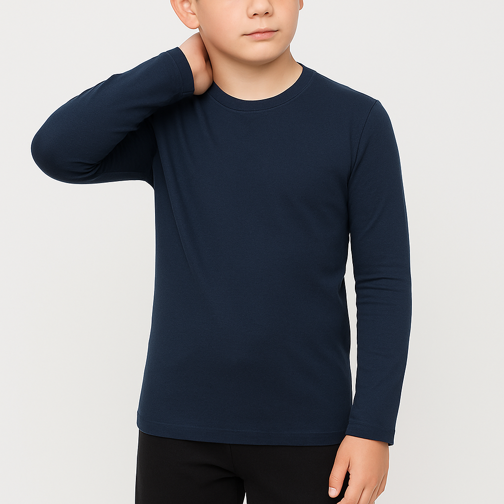 Camiseta de manga larga con tejido de canalé fino de 100% algodón peinado. Con un tejido especial en el cuello y puños para que no se desboque con el uso. Material totalmente natural y transpirable, ideal para alergias o pieles atópicas. No tiene costuras, por lo que no roza la piel por ningún sitio. El tejido es anti-pilling, que no hace bolas. Los colores no se destiñen con los lavados.