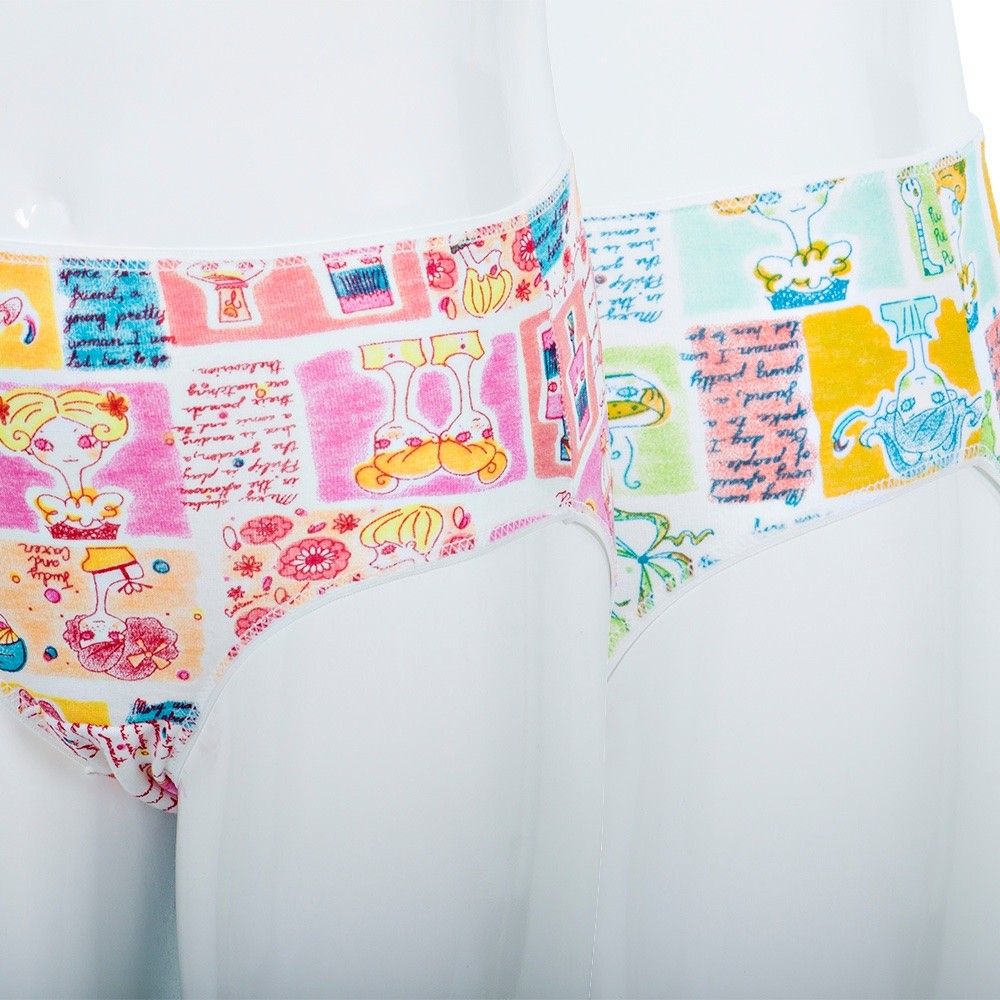 Pack de 2 braguitas de 100% algodón peinado con cintura y perneras adaptables. De un tejido de todo tiempo que transpira y no retiene la humedad. Con unos estampados de varios dibujos que gustan mucho a las niñas. Aguantan los lavados sin hacer bolas. Para ir cómoda y a la moda.