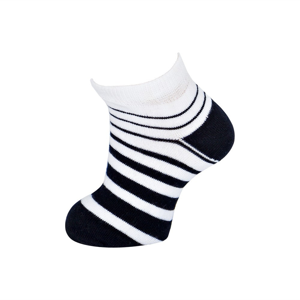 Calcetín invisible, justo por debajo del tobillo con tejido para todo el año. Con un dibujo de rayas de diferentes grosores y con las costuras planas que no molestan. Un calcetín deportivo perfecto para llevar con zapatillas. La composición favorece la transpiración, evita alergias y ayuda a estar confortable en actividades de ejercicio.