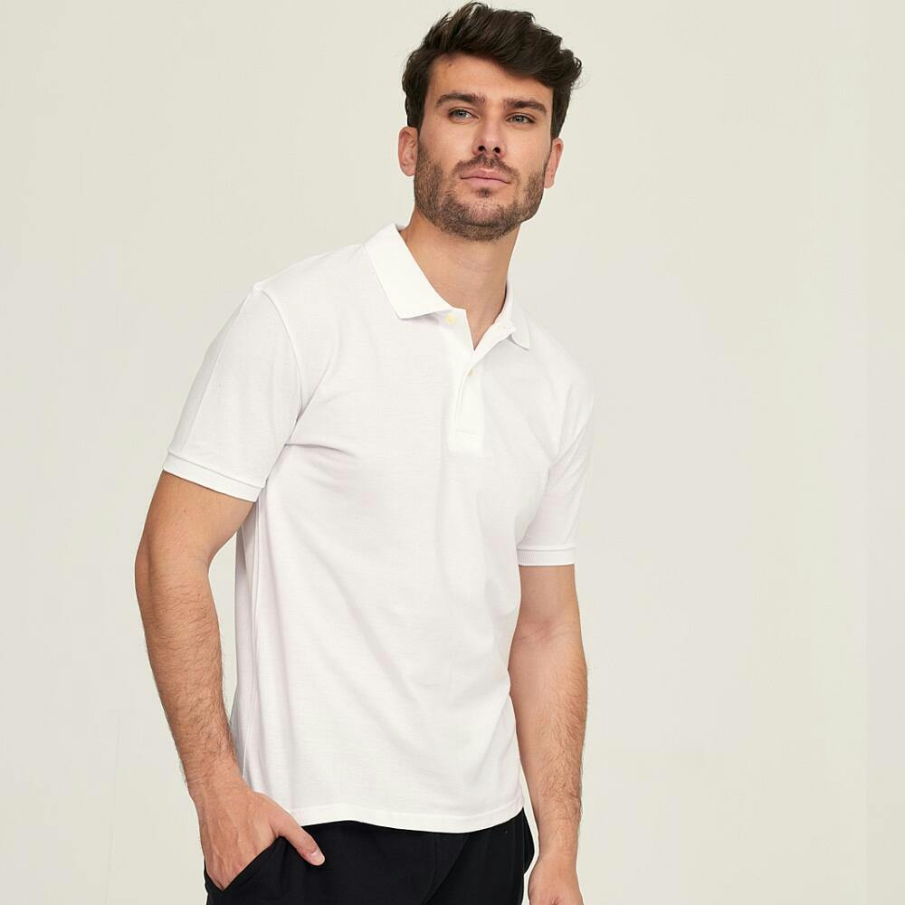 Polo de manga corta de 100% algodón peinado, con tejido de todo tiempo tipo piqué. Tiene puño en las mangas y botones en la tapeta del cuello. Con un tejido especial en los puños y cuello para que no se desboque con el uso. El patrón es clásico, no queda ceñido al cuerpo, sino que queda recto. Material totalmente natural y transpirable y tejido anti-pilling, que no hace bolas. Los colores son muy duraderos con los lavados.