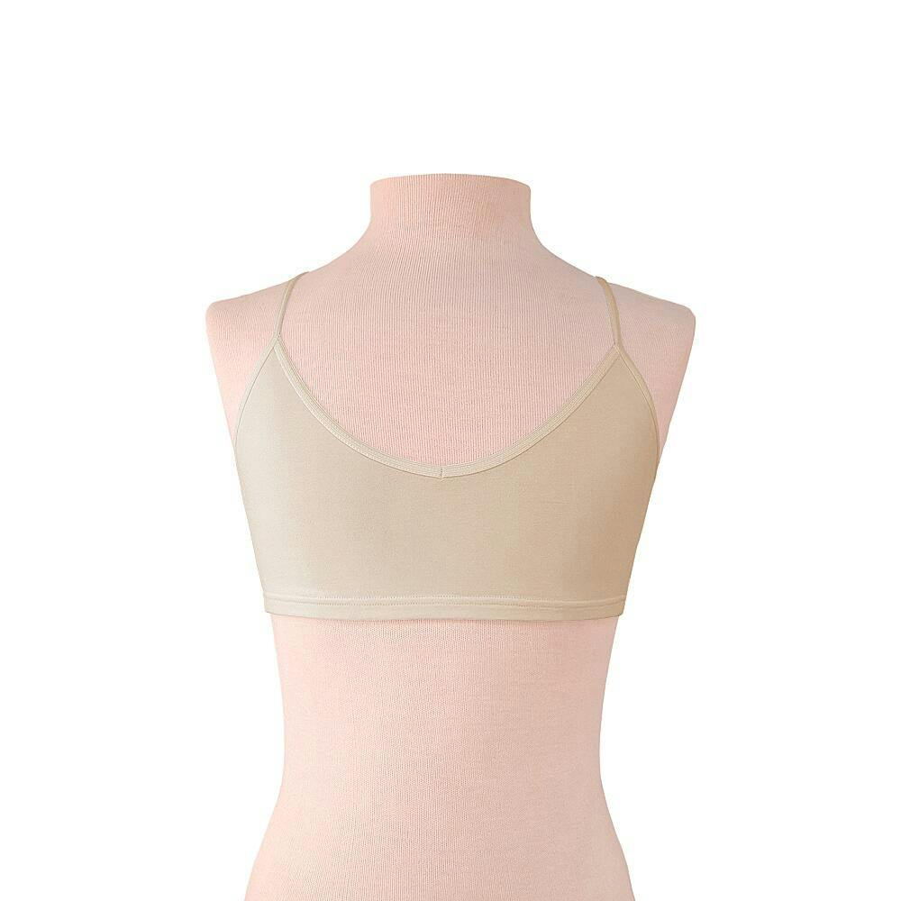 Tirantes finos y discretos. La forma de la prenda y el escote delantero y trasero permiten una sujeción segura y que el top no se aprecie en camisetas o vestidos más escotados.