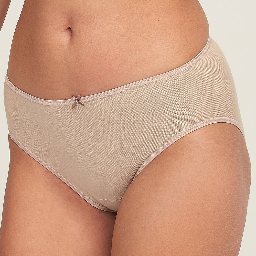 Braguita de talle medio sin costuras con alto porcentaje de algodón peinado, totalmente transpirable. Su pequeña cantidad en elastano hace que se adapte a tu forma sin perder la propiedad de transpiración. Costuras extra planas y lacito de adorno en la cintura. No hace bolas y es resistente a los lavados y uso.