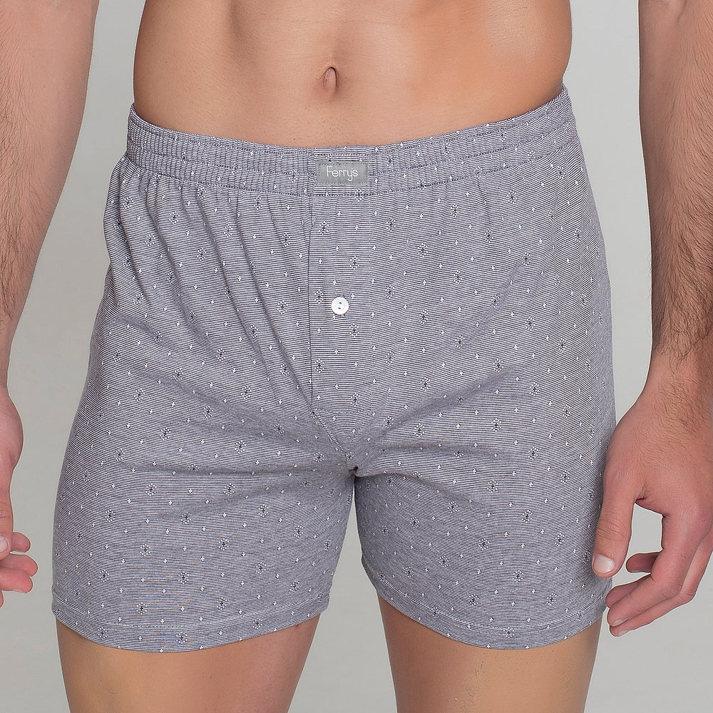 Button-front boxer briefs made from 100% combed cotton. Made from a smooth, all-season fabric with a handcrafted, embroidered spade pattern, the interior is very elegant. The colors do not fade with washing. The waistband is stitched with multiple needles for strength, adaptability, and durability. The fabric does not pill. Available in various colors and sizes.