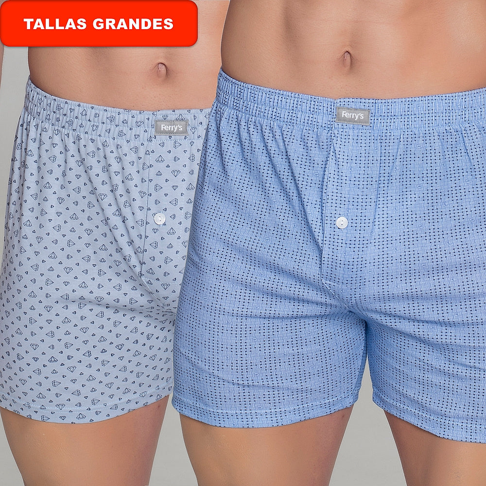 Pack of two printed boxer shorts made from 100% cotton. In shades of blue and with a button closure. Elegant yet comfortable.