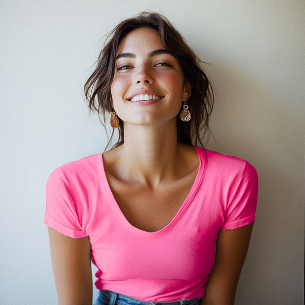 7825 CAMISETA MANGA CORTA CUELLO V DELANTE Y DETRÁS