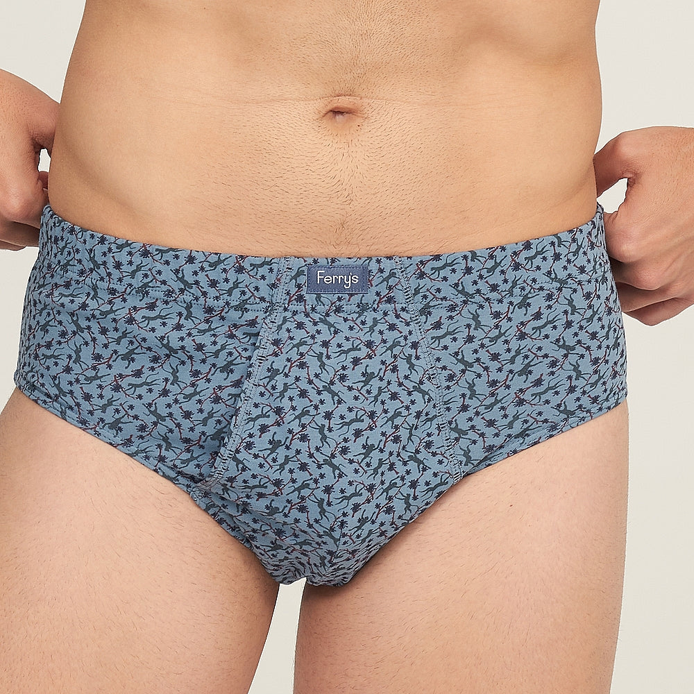 Pack of three open briefs made from 100% cotton. Two briefs feature a bow and floral print, and one plain blue brief.