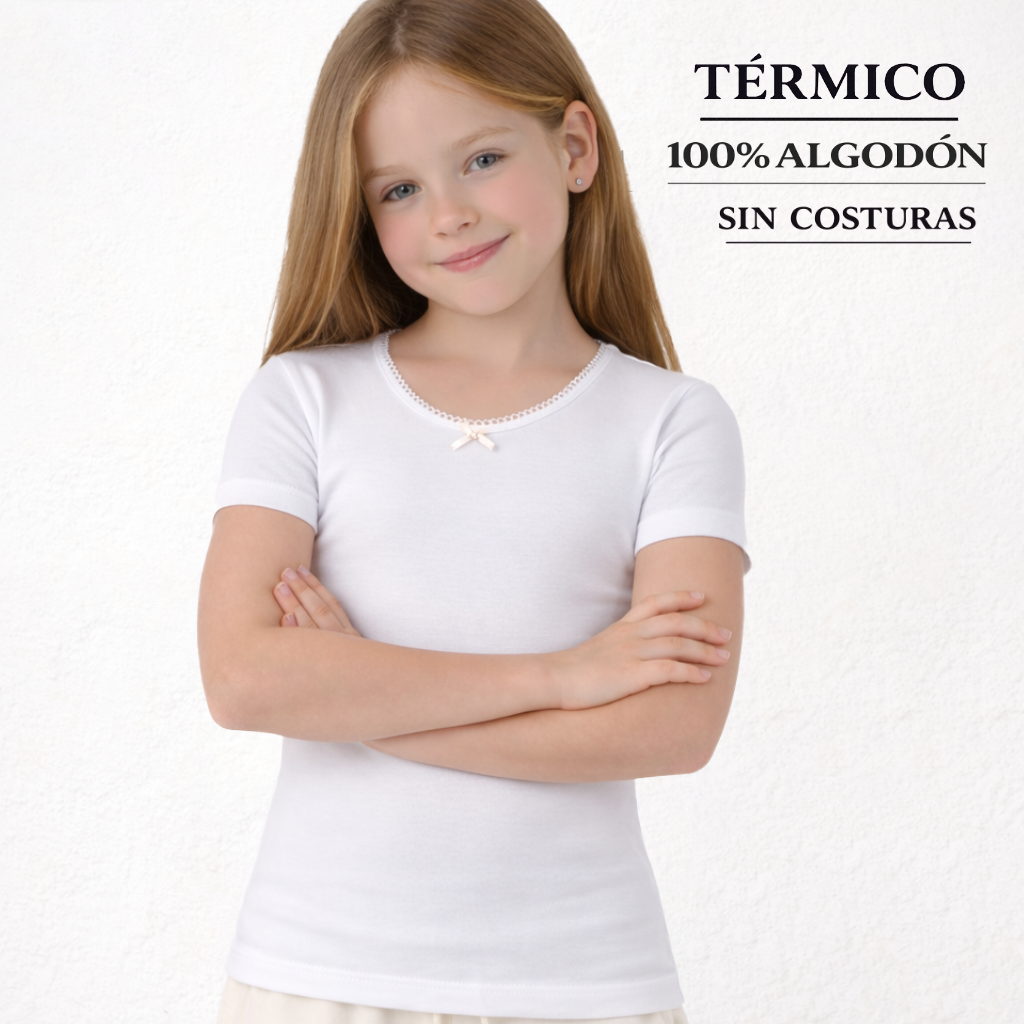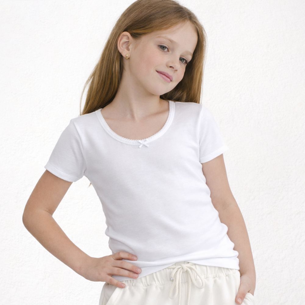 9805 THERMAL FLEECE SHORT-SLEEVE T-SHIRT WITH A LITTLE BOW