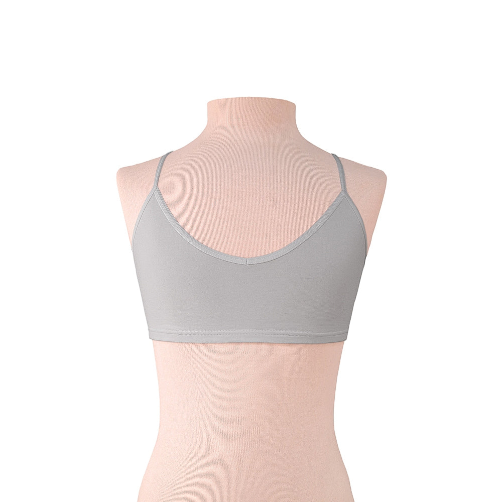 Thin, discreet straps. The shape of the garment and the front and back neckline provide a secure fit and prevent the top from being visible under more low-cut T-shirts or dresses.