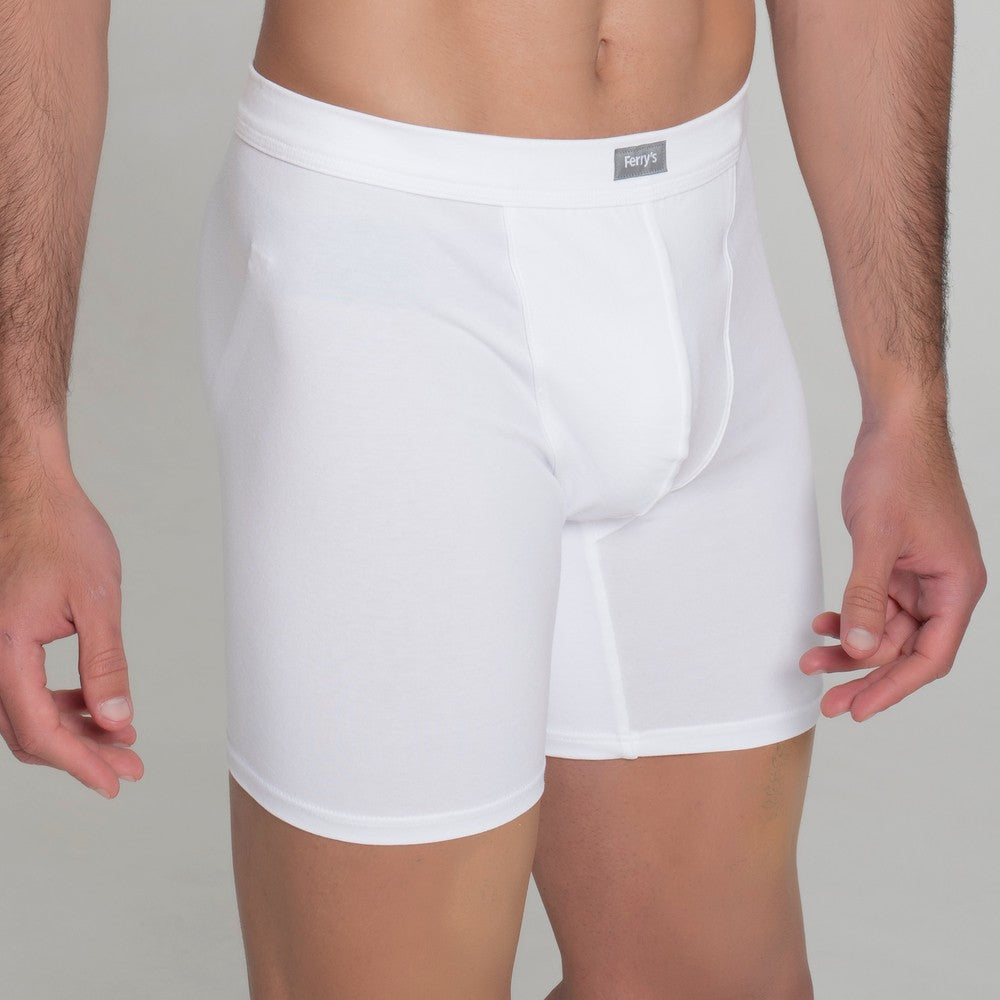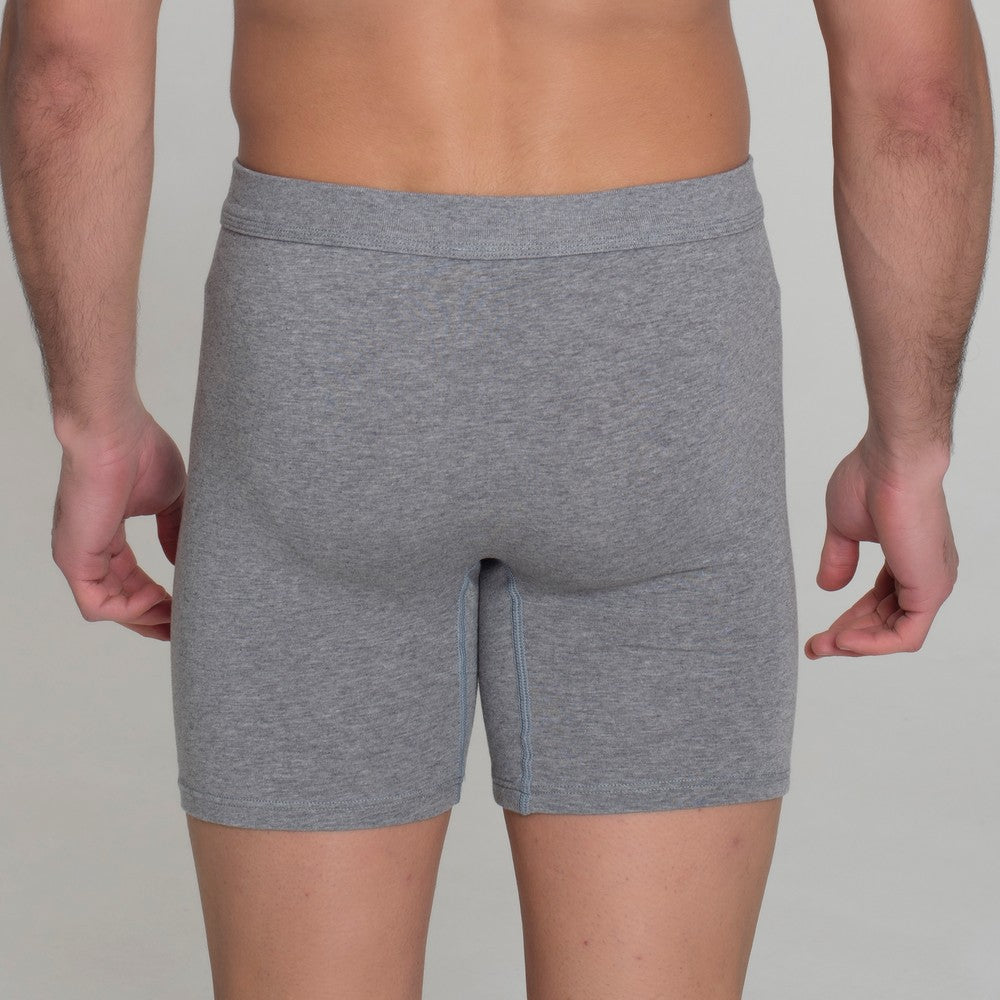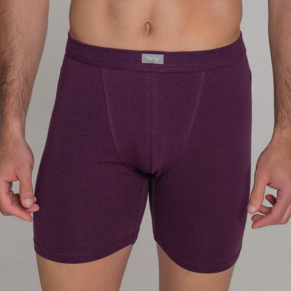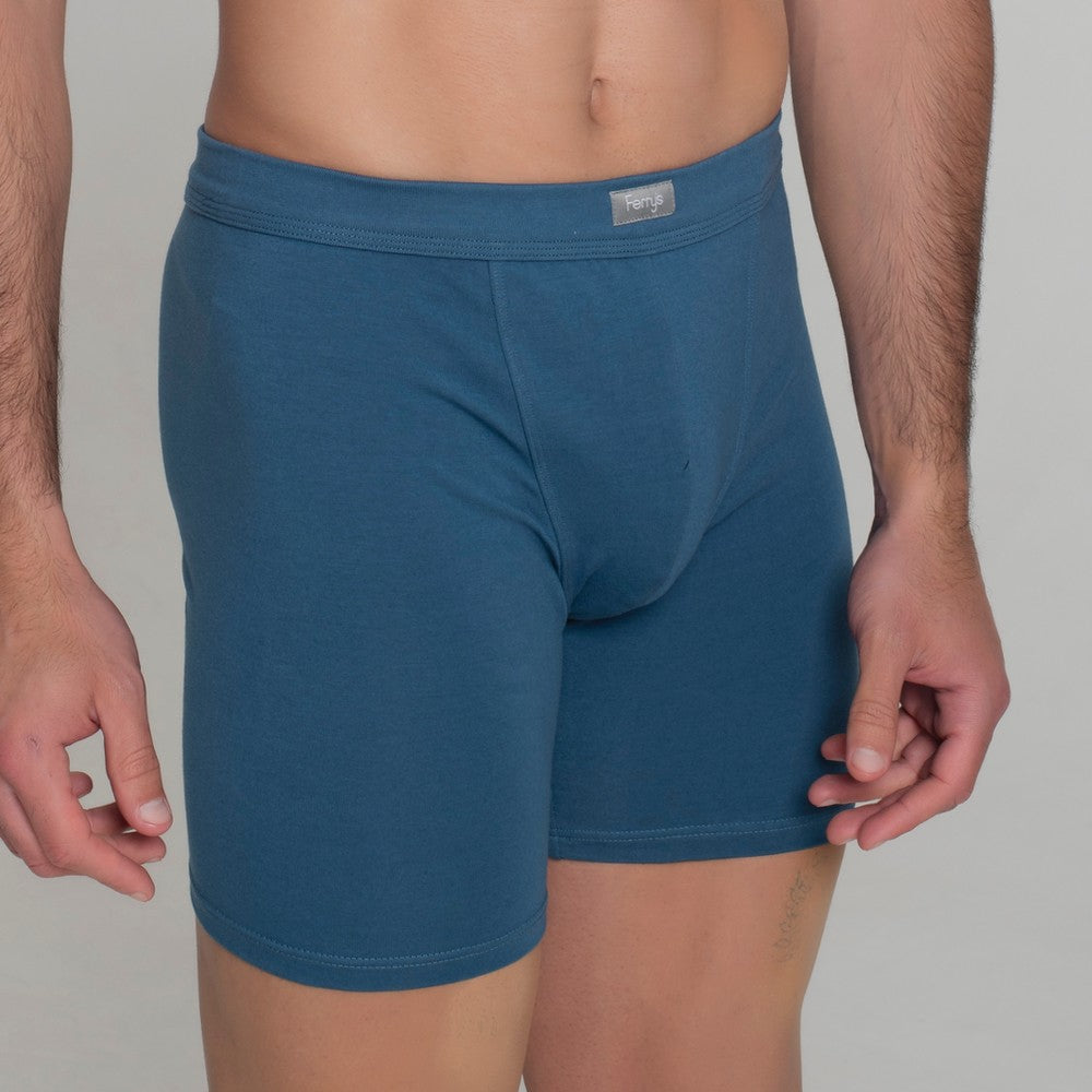 Basic boxer briefs with a smooth, all-season fabric and a high-quality combed cotton composition, making them highly breathable. A carefully designed design ensures a snug fit and prevents holes from forming in high-stress areas, such as the buttocks. They have an extra length for men who may experience chafing in the crotch, for those who want extra warmth, or for those who simply prefer this fit. The waistband is seamless and the fabric doesn't pill. The colors are highly wash-resistant. A very comfortable everyday garment.