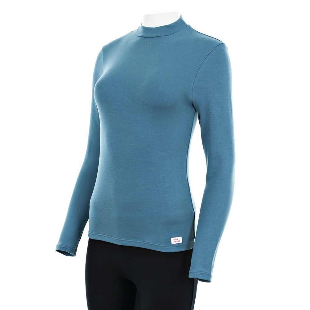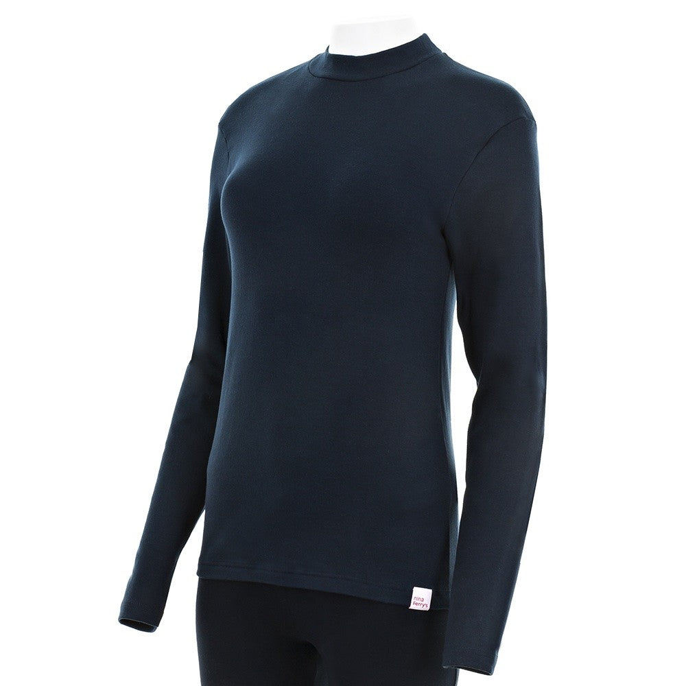 Long-sleeved T-shirt with a medium-high neck and high-quality combed cotton. Thanks to its low elastane content and the fabric's shape, it fits snugly against the body and doesn't lose shape with use. It looks great both on the outside and under clothing, always keeping your neck warm. It's seamless, so it won't rub against your skin anywhere. The fabric is anti-pilling, doesn't pill, and the colors resist countless washes.